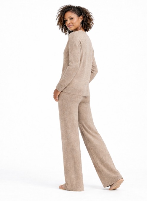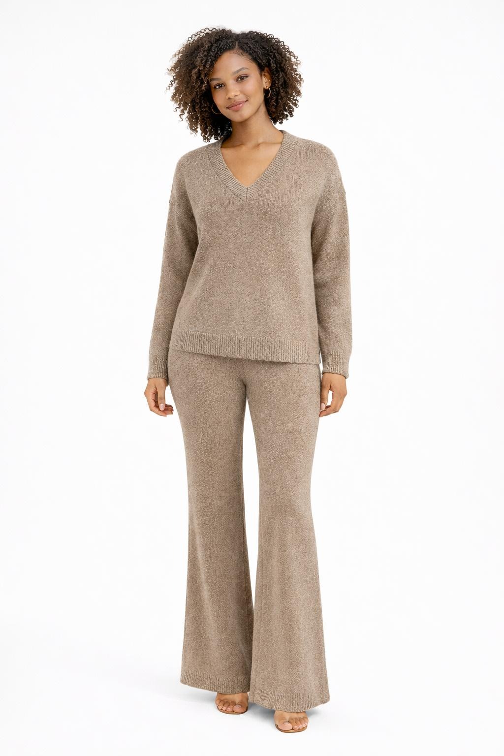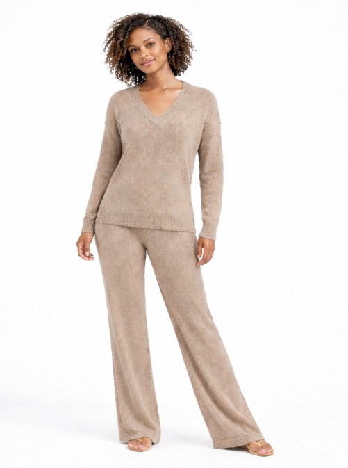 The ribbed neckline, cuffs and hem add subtle structure, while the cosy, mid-weight knit drapes beautifully without feeling heavy. Perfect for layering or wearing on its own, this jumper pairs seamlessly with trousers, jeans or matching knit bottoms.