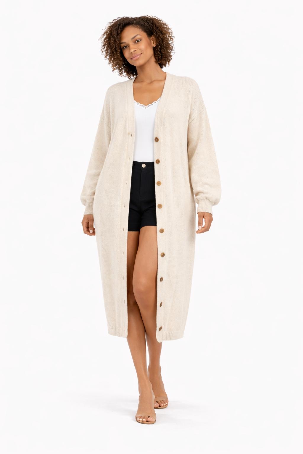 Longline Button-Through Maxi Cardigan